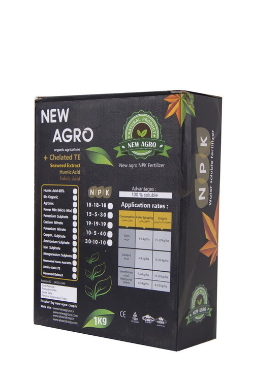 شرکت الوند دانه خمین با برند تجاری نیواگرو بزرگترین تولید کننده و صادر کننده کودهای بیولوژیک و ارگانیک و کلات NPK در ایران و خاورمیانه است. محصول کود NPK 20-20-20 +TE این شرکت حاوی نسبت متعادلی از عناصر پرمصرف مورد نیاز گیاهان نظیر نیتروژن، فسفر و پتاسیم، هر یک با غلظت 20% میباشد که افزایش کمی و کیفی محصول را در پی دارد. همچنین این محصول به جهت کاهش اثر تنش های محیطی، مقاوم سازی و رشد مطلوب گیاه حاوی اسیدهای آمینه ضروری میباشد که موجب تحریک رشد گیاه شده و سبزینگی و جذب سایر عناصر توسط گیاه را افزایش داده و از کمبود های تغذیه ای یا عدم توازن عناصر غذایی نیز جلوگیری مینماید. استفاده از این محصول باعث افزایش تشکیل ریشه و بهبود رشد اولیه گیاه، افزایش قند، بهبود رنگ و طعم میوه و در نهایت باعث افزایش وزن محصول شده و در تمامی مراحل رشد گیاهان، به خصوص در زمان رشد رویشی توصیه میگردد.